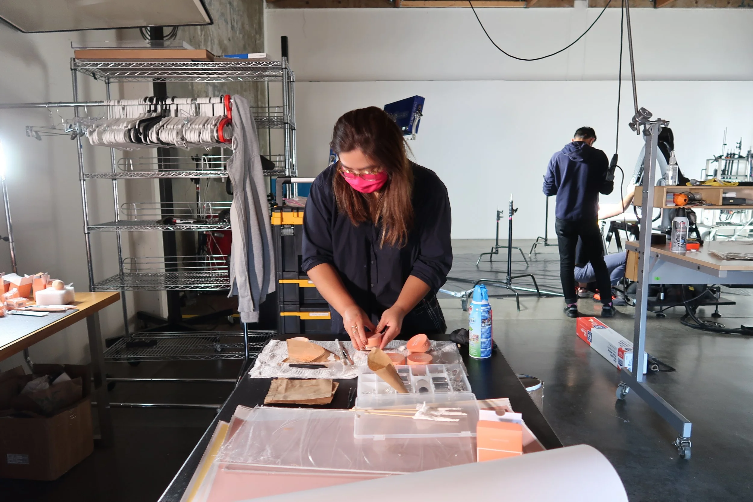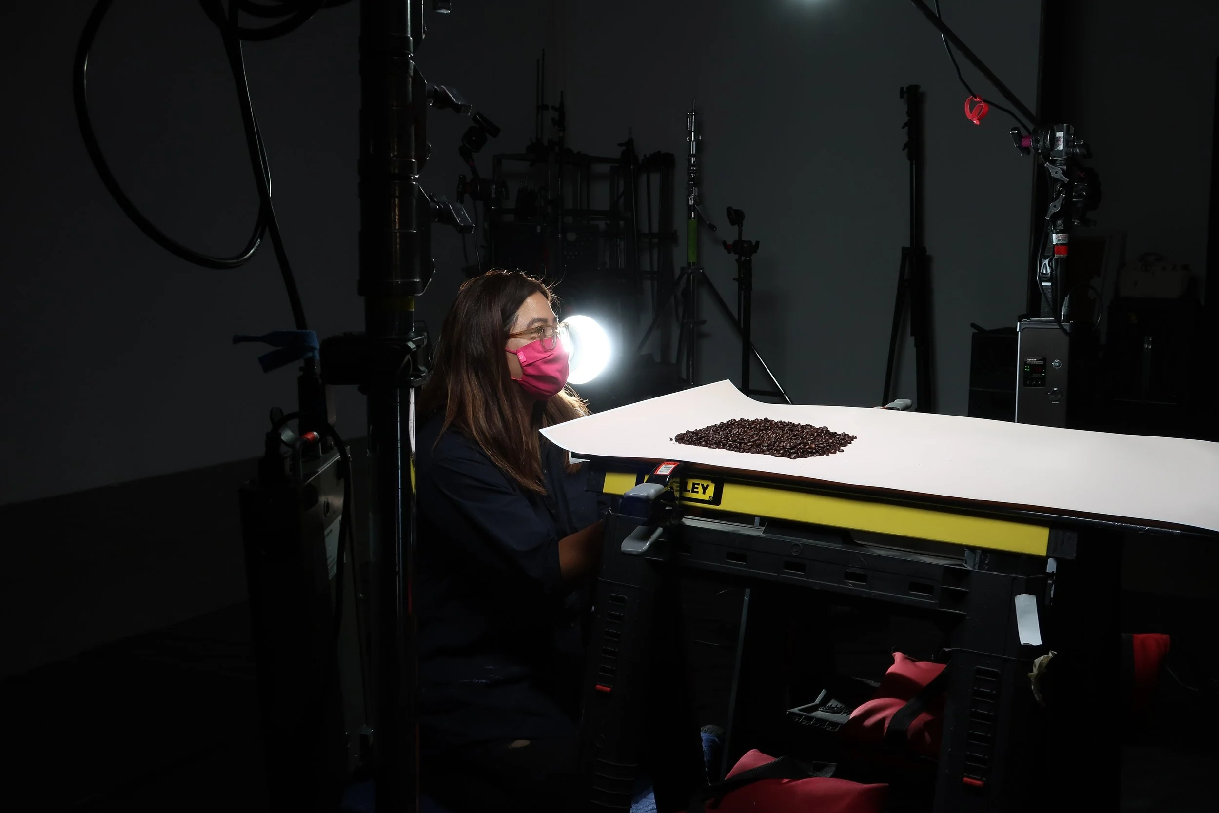 Custom curated the powders to match the brand colors and made some props we used for this as well as styled the products on set. This was such a messy set but we had so much fun making all the motion effects.